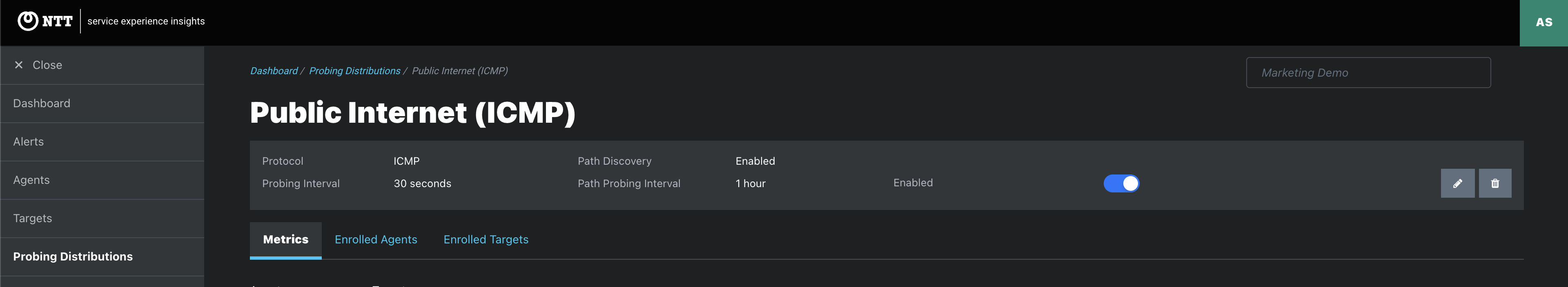 Once enabled, the path probing interval and “enabled” toggle are shown on the probing distribution page and can be toggled on and off.